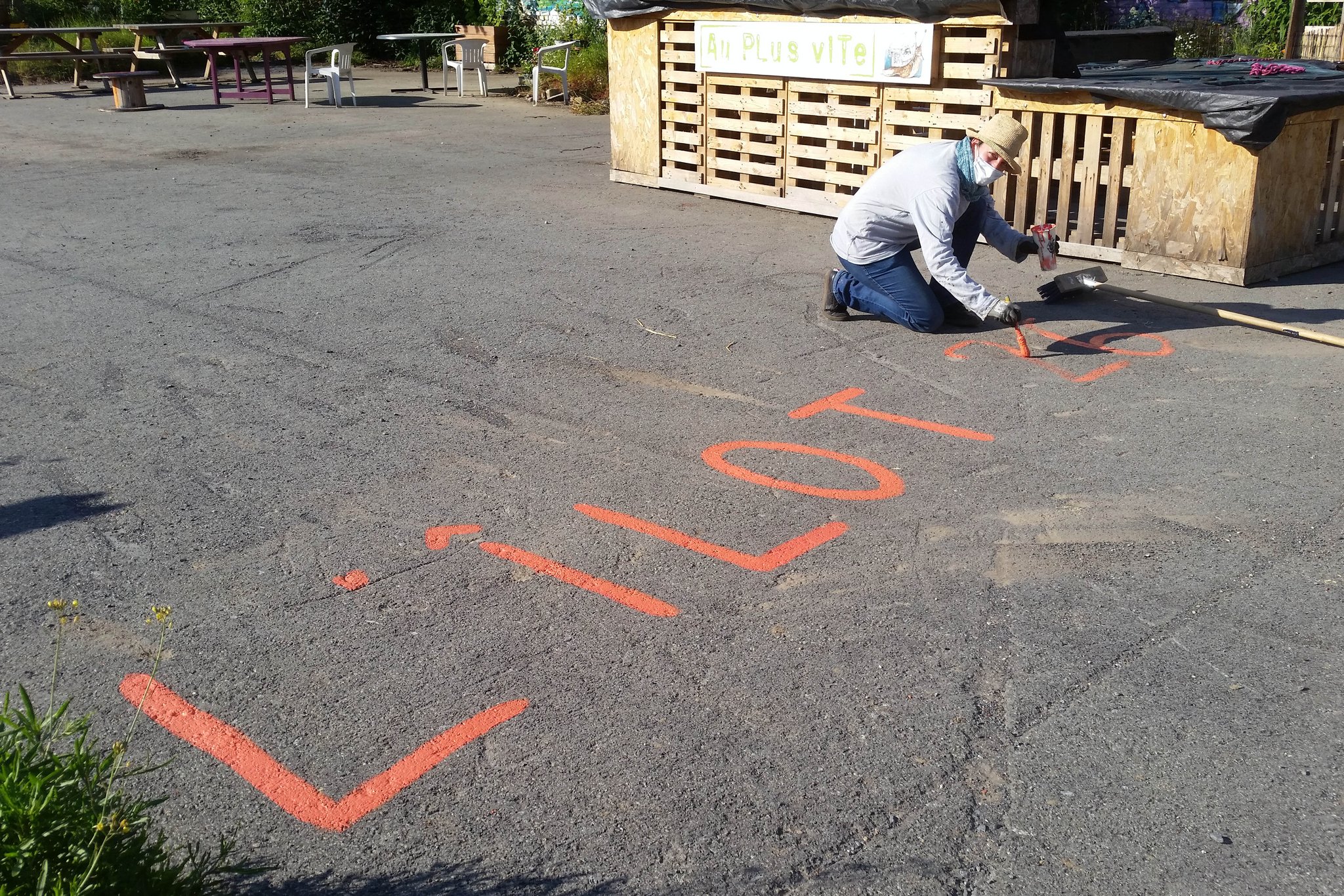 Imaginer, dessiner et peindre des jeux au sol avec les enfants : telle a été la mission que nous a confiée le collectif lommois L'îlot 26 pour personnaliser leur parcelle partagée ! La thématique retenue : le jardin potager. Au programme des jeux : un "cherche et trouve", un tournesol géant qui peut s'utiliser comme marelle, jeu d'équilibre, un grand escargot jeu de l'oie et le jeu de la grenouille qui permet de viser, de sauter de nénuphars en nénuphars et de faire plein d'autres choses encore !