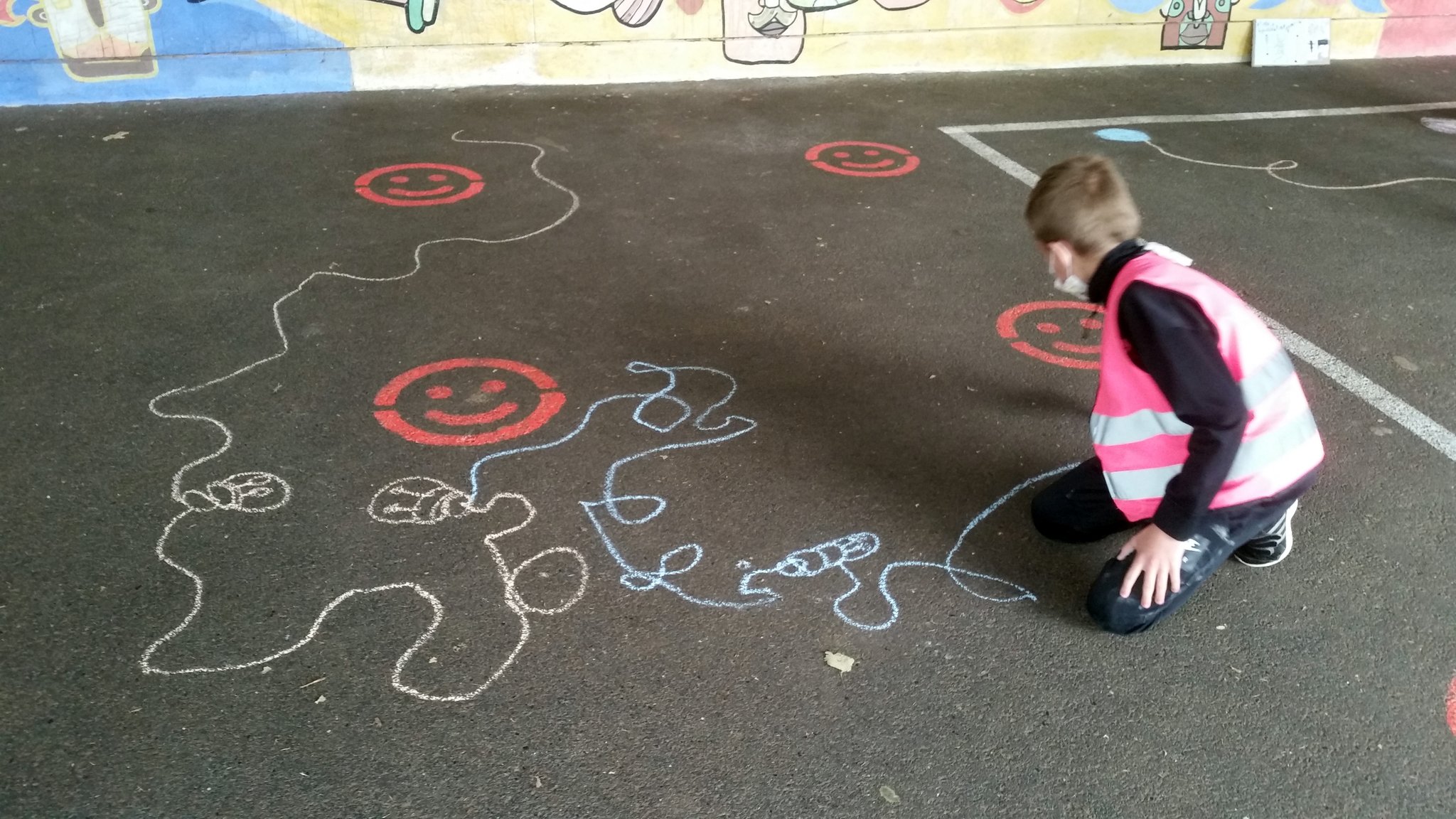 parcours de jeux au sol à la bombe de craie.