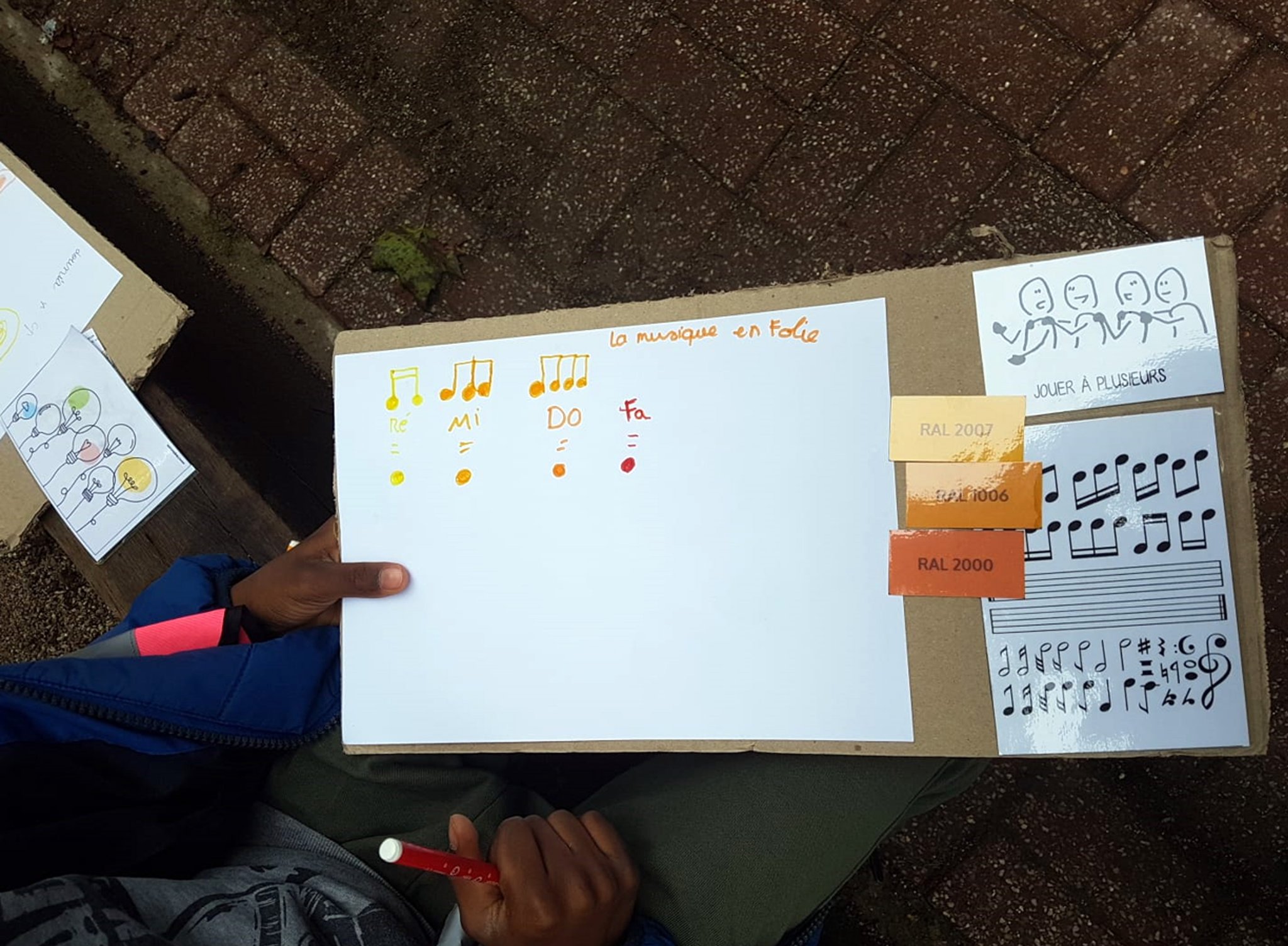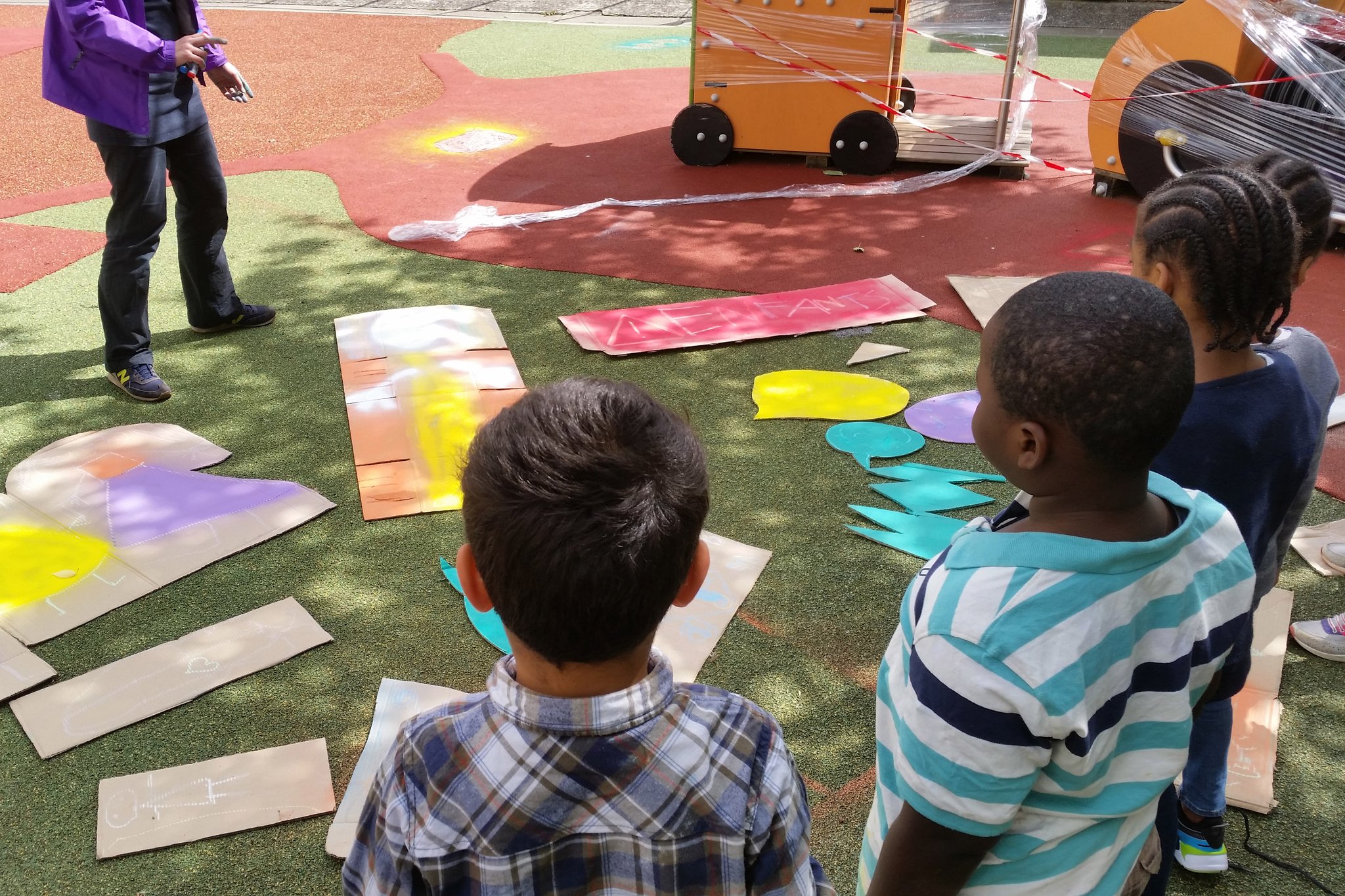 enfants sur leur place dans la rue (comment s’y sentent-ils ? Y jouent-ils et si oui, à quoi ?) puis investi le parvis de leur école en créant une signalétique indiquant leur présence et un