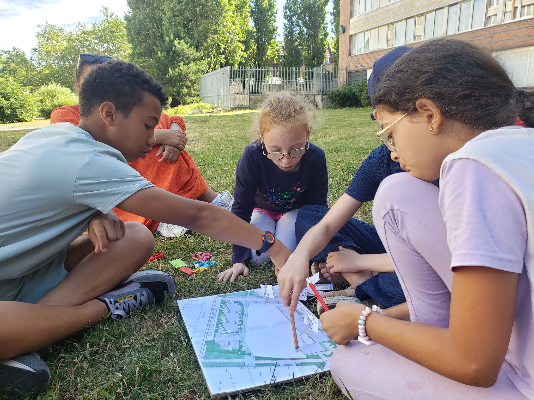 Dans le cadre du renouvellement urbain du quartier de l'Epeule à Roubaix, deux immeubles de la résidence "Les trois arbres" appartenant au bailleur Vilogia vont être déconstruits, créant ainsi une ouverture du cœur d'îlot sur une future école et une allée piétonne. Durant l'été et à la rentrée 2023, nous menons des ateliers avec des enfants du centre social et de la résidence pour échanger et travailler sur leurs aspirations quant aux usages et aux aménagements potentiels de ce pied d'immeuble.